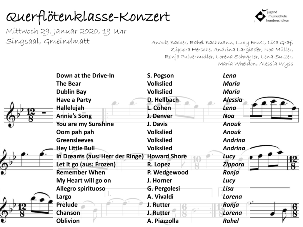 Herzliche Einladung zur Musizierstunde der JMSH …