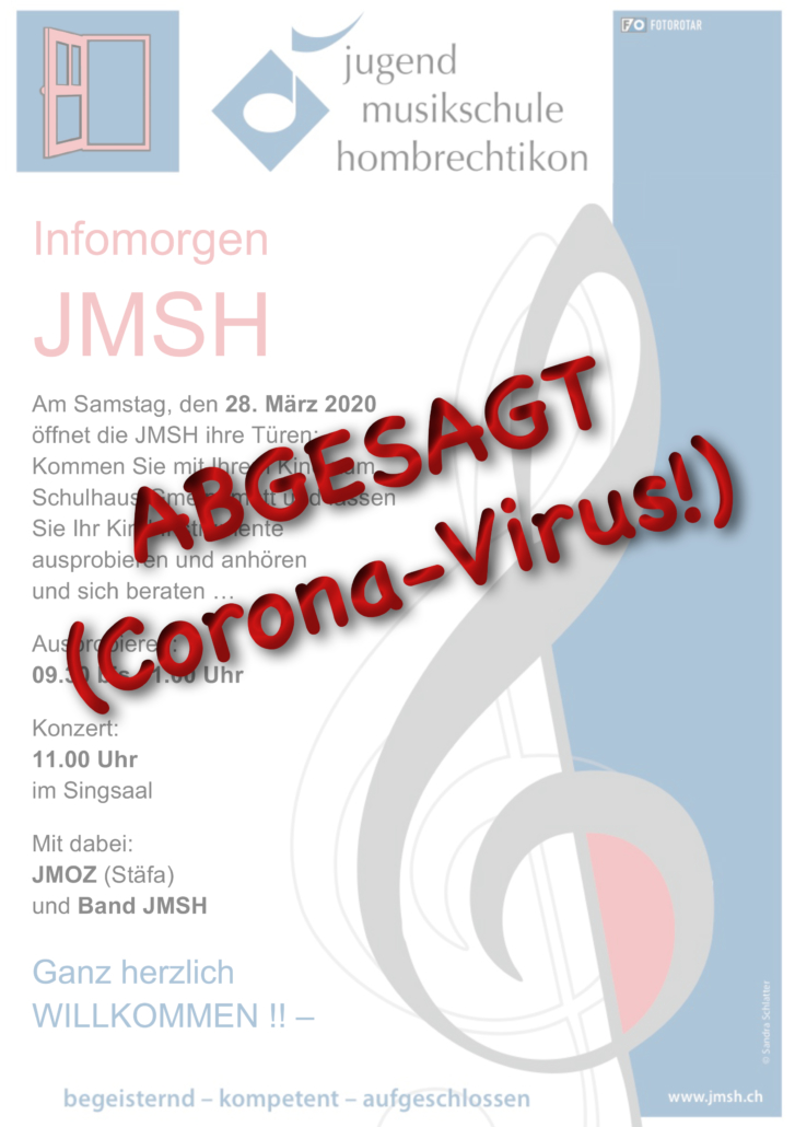 Da momentan ziemlich akut die Gefahr besteht, sich mit dem Corona-Virus anzustecken, hat die JMSH entschieden, den Anlass «Infomorgen der JMSH» leider ersatzlos abzusagen. Vielen Dank für Ihr Verständnis!